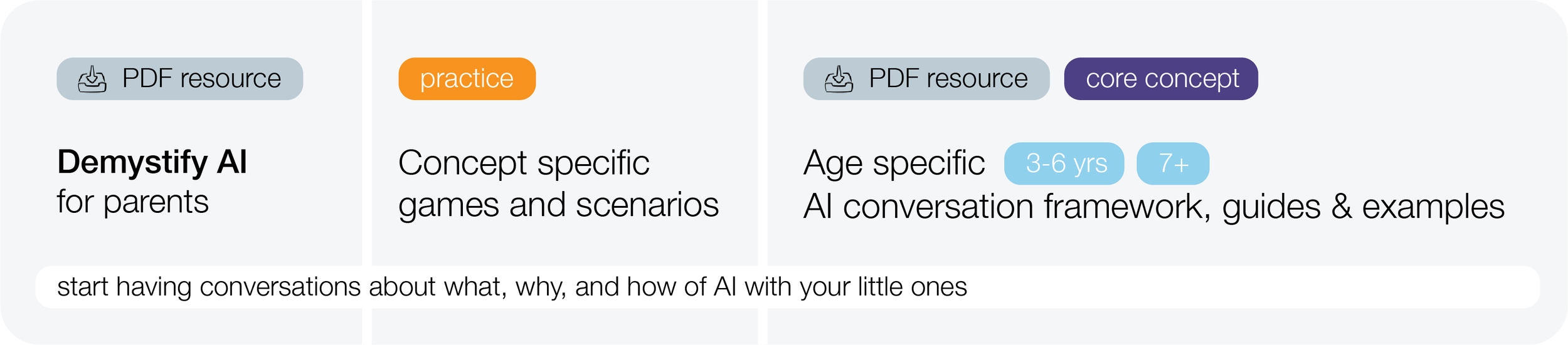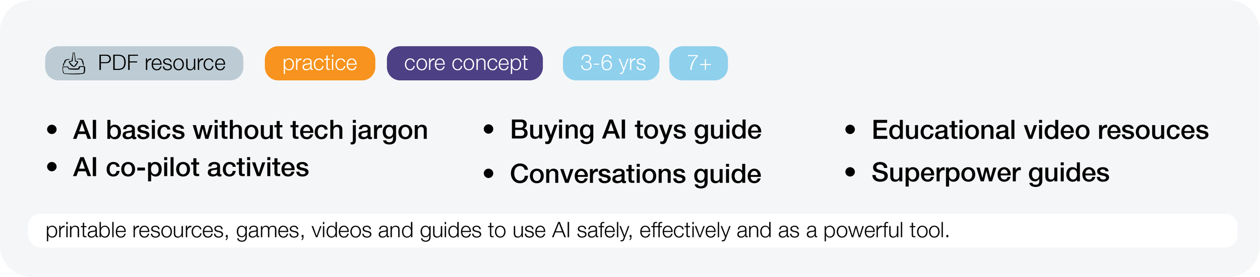 "Your Guide to AI Conversations pt 2" is tailored for parents of older children (ages 7+), showing you how to introduce more complex topics like algorithms in a way that’s engaging and fun.