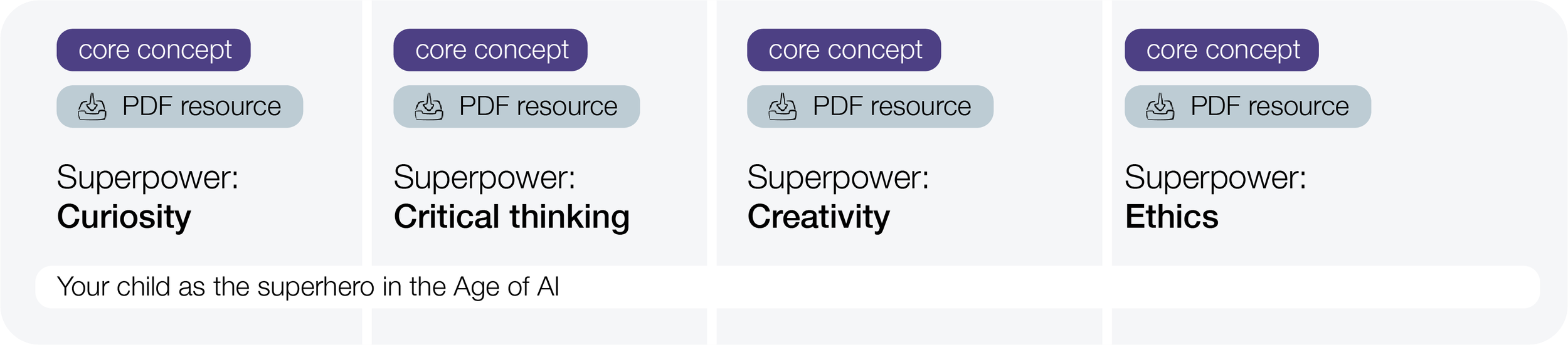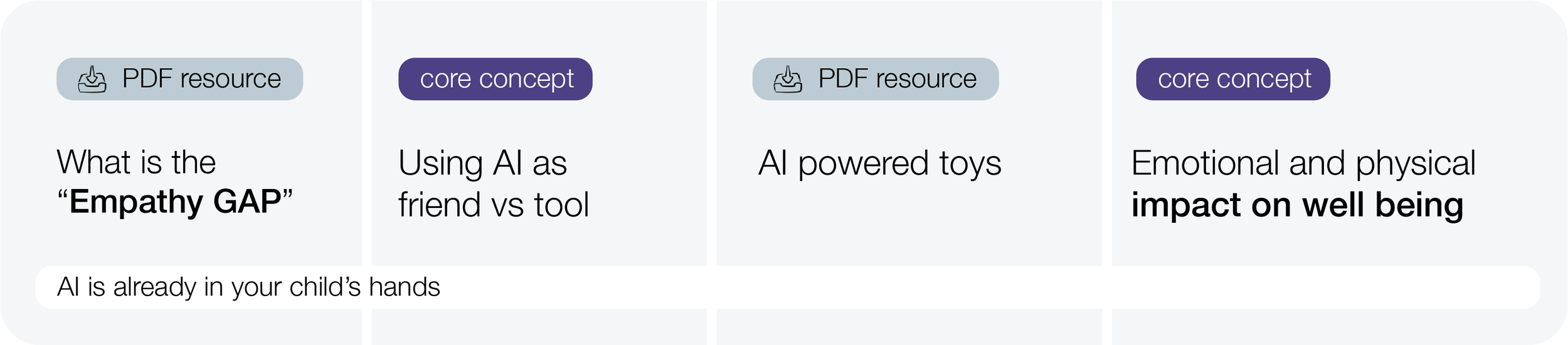 The challenges you'll face when your child is 8 are different from when they are 13. With lifetime access, you can revisit the lesson on "Critical Thinking" when your child becomes a teen, or use the "Guide to AI Conversations pt 1" when your younger child enters school. The playbook will be there for you at every stage.