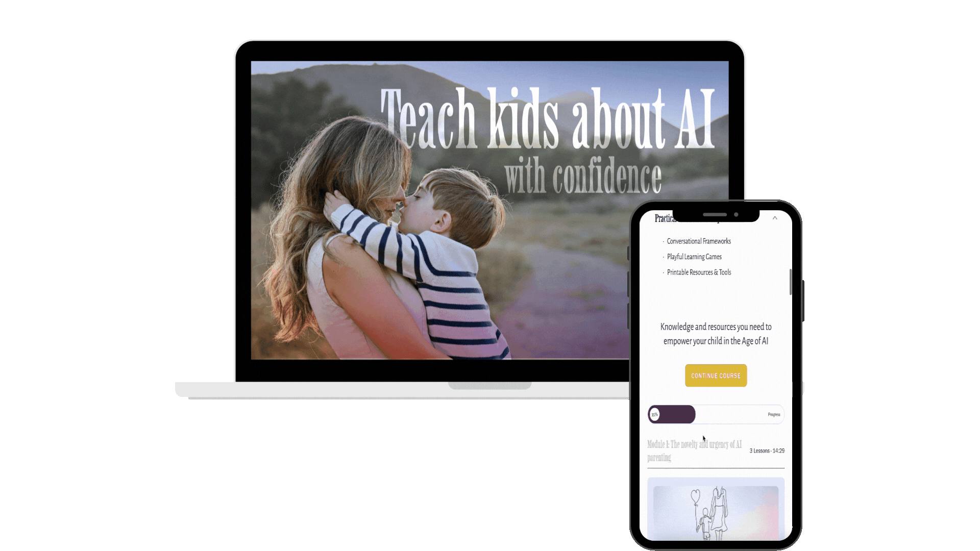 When I struggled to find resources that actually worked for my own family, I decided to create them. That journey led me to write Unplug and Play: A Parent’s Guide to Reducing Screentime and when I realized the importance of teaching my child about how AI worked and struggled to find the right approach, it led me to develop this course—to give parents practical tools to shape your child’s relationship with AI, and contrary to how we experienced it, for our children that relationship starts very early.